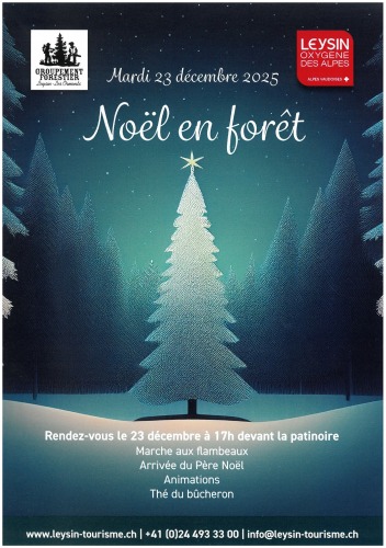 Pour tenter de voir le Père Noël en forêt à Leysin, rendez-vous le 23 décembre 2025 à 17h00 au parking de la patinoire pour une marche aux flambeaux jusqu’au Suchet.